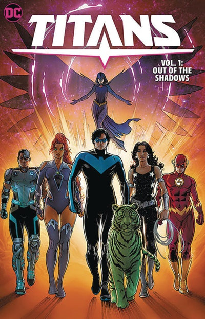 The Justice League has fallen and only the Titans can save us now! In the aftermath of Dark Crisis, the world is without a Justice League. Nightwing is determined to step out from his mentor's shadow and lead his former teen teammates to be the world's foremost superheroes, protecting all humanity. Nightwing vows to operate openly and with full transparency among his team and allies. But already the Titans are at odds with the powerful Amanda Waller, Borneo is on fire, and the Church of Blood has been reborn. When the Flash is found dead in Titans Tower, it's a wake-up call for the whole team--can they really handle this much responsibility? Or are they in over their titanic heads? Titans: Out of the Shadows brings together the titanic team of Tom Taylor (Nightwing, Batman: One Bad Day) and Nicola Scott (Wonder Woman: Year One). Expect thrills, chills, and pools of blood spills as the Titans attack from out of the shadows! Collects TITANS #1-5.